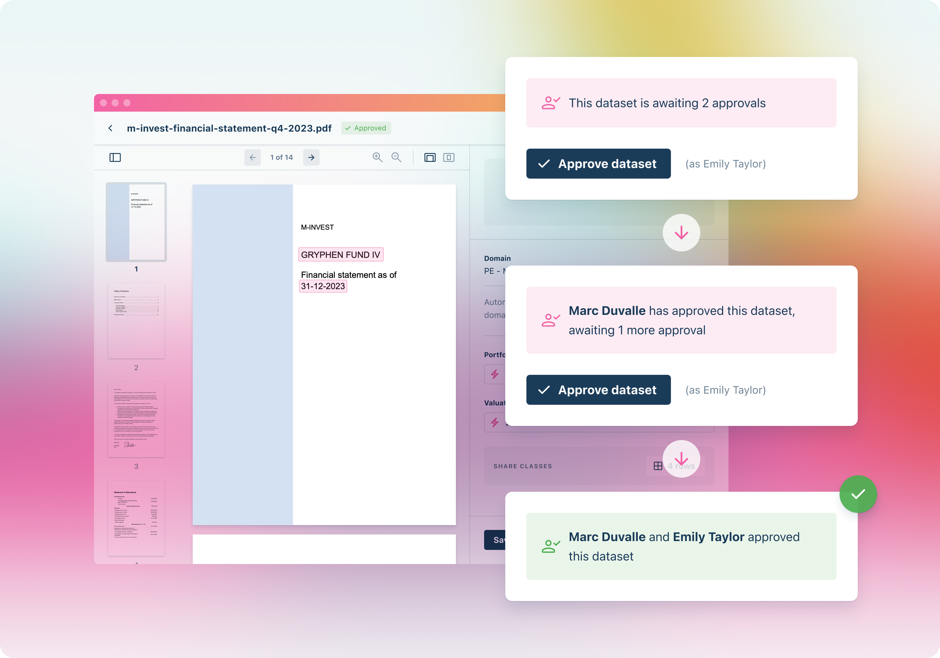 Build data workflows that will withstand any audit and control framework. Eliminate manual work in approval, signoff, and evidence production processes.